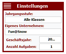 - Bei Eigenes Unternehmen wählen Sie über das DropDown Feld das gewünschte Beispielunternehmen aus, auf das sich die Geschäftsfälle beziehen.